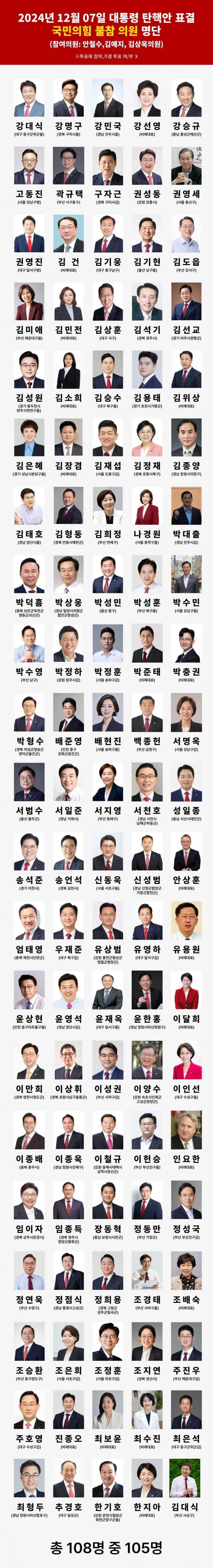 ‘대통령(윤석열) 탄핵소추안’ 표결 참석 국민의 힘 의원 명단
